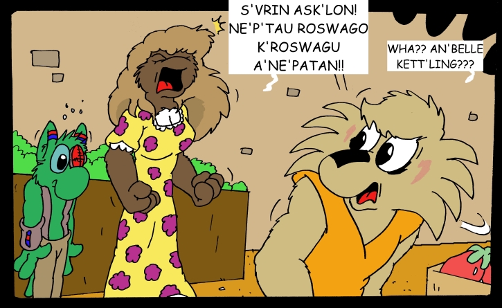 Roughly translated....Annabelle's saying, "Sevrin Ashkelon, shame to his father and his father's father." It's a pretty deadly insult in an agonistic culture in which one's identity is taken from one's ingroup, especially the family.